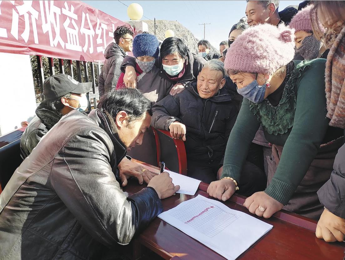 “此次分红收益来自上巴塘村300万购畜项目,2025年收益达到了24.15万元。”上巴塘村党支部书记青然说,村集体始终秉持“发展成果全民共享”的理念,列支近13.6万元专项资金,采购优质米面油等生活物资,确保508户家庭都能分享村集体经济发展红利。